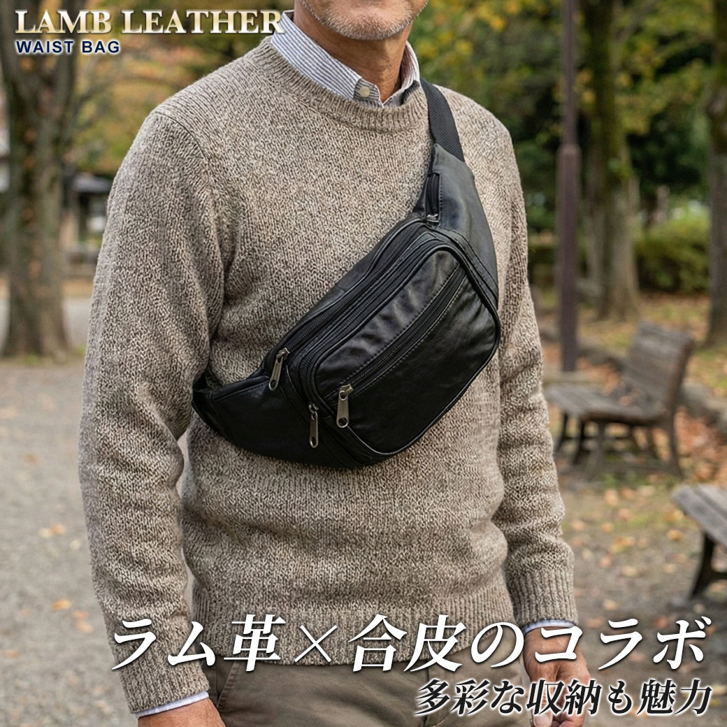 ウエストポーチ JEMORGAN(ジェーイーモーガン)フェイクレザー 合皮 シンプルウエストバッグ/ボディバッグ/スリングバッグ メンズ レディース