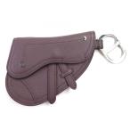 美品◇DIOR ディオール オム f-21512 レザー CDロゴ金具 サドル ポーチ バッグチャーム ダークパープル シルバー金具 メンズ