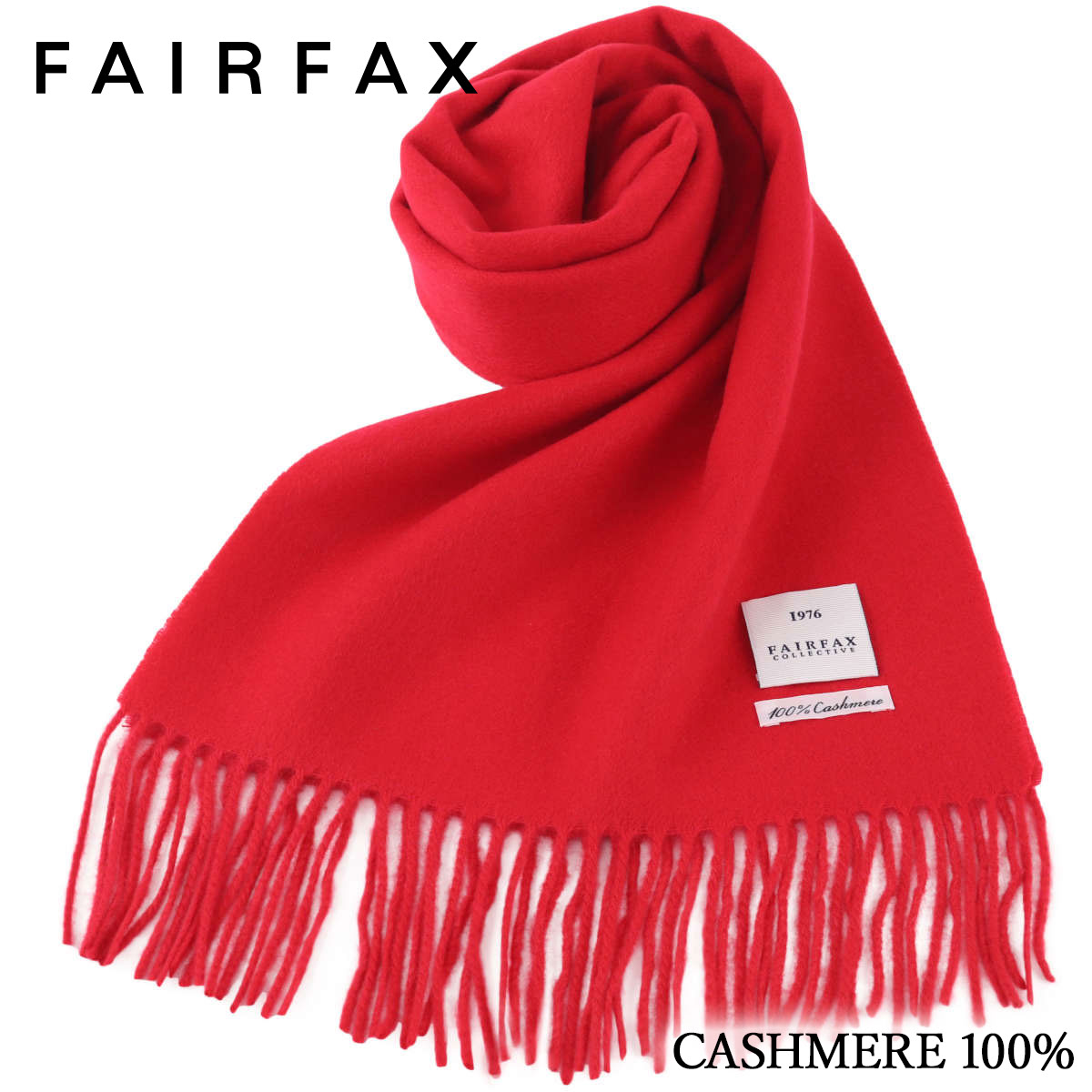 【10%OFFクーポン配布中!12/4 20時〜5H限定】 フェアファクス FAIRFAX 無地 マフラー カシミヤ100% メンズ レッド クリスマス