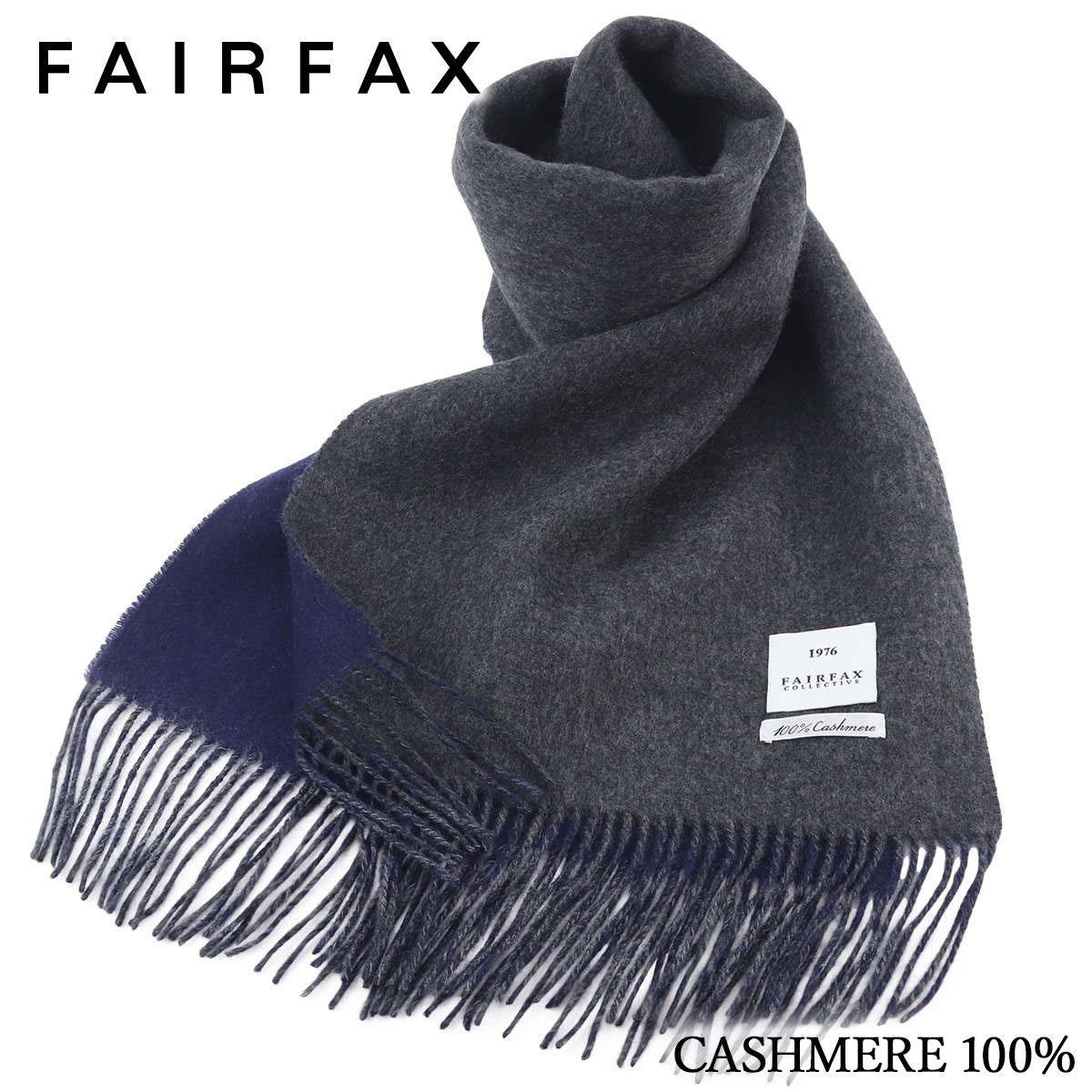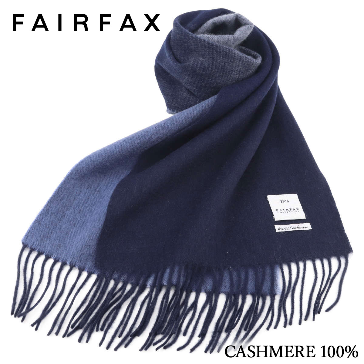 【10%OFFクーポン配布中!12/4 20時〜5H限定】 フェアファクス FAIRFAX グラデーション マフラー カシミヤ100% メンズ グレー×ネイビー 無地 クリスマス