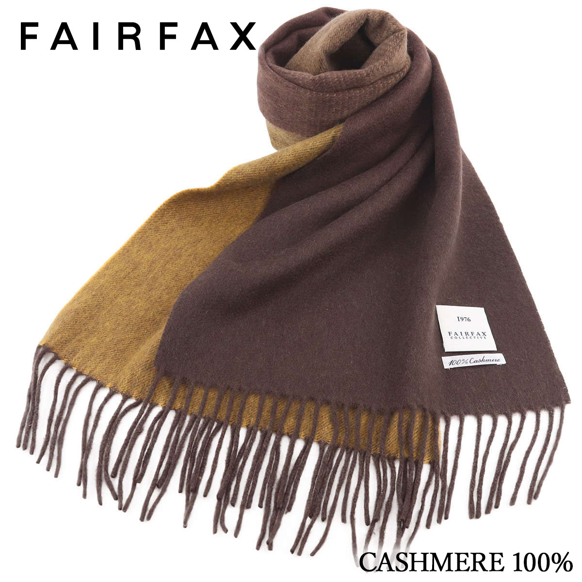 【10%OFFクーポン配布中!12/4 20時〜5H限定】 フェアファクス FAIRFAX グラデーション マフラー カシミヤ100% メンズ ブラウン×マスタード 無地 クリスマス