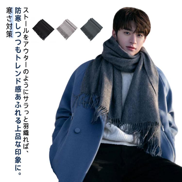 マフラー メンズ 大判 秋冬 防寒 保温 寒さ対策 シンプル ロングマフラー 柔らかい無地 メンズマフラー 長さ暖かい カジュアル アウトドア 羽織 通勤 通学 ファッション おしゃれ 簡単装着 韓国ファッション