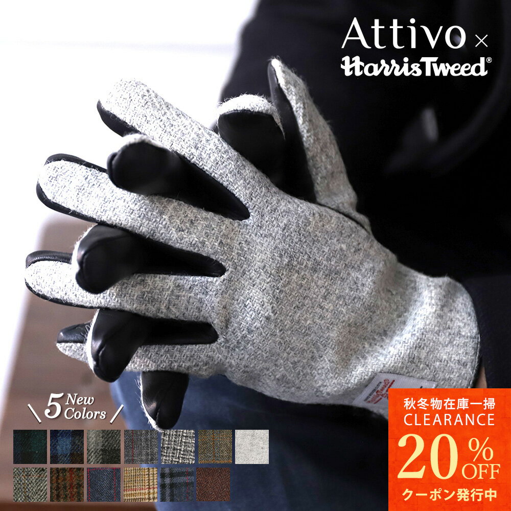 【本日24h限定全品P5倍】【冬物クリアランスSALE|クーポンで20%OFF】ハリスツイード 手袋 メンズ スマホ対応 ウール 革 レザー HarrisTweed Attivo アッティーヴォ ウール 全12色/3サイズ 男性用 グローブ 秋冬 防寒