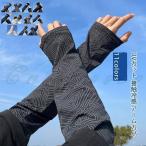 かっこいい アームカバー 接触冷感 UVカットメンズ 手袋 指穴付き 指なし 吸汗速乾 ゆったり 紫外線対策 日焼け対策 夏 秋 サイクリング用 薄手