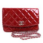 シャネル チェーンウォレット 長財布 ショルダーバッグ 赤 レッド パテントレザー マトラッセ 美品 シルバー ポシェット CHANEL r514