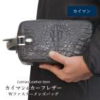 カイマン & 牛革 セカンドバッグ メンズ 本革 ダブルファスナー マット加工 ワニ革 誕生日 ギフト プレゼント 父の日 No.508978
