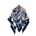 HERMES◆カレ140/patchwork horse/カシミア/ネイビー/総柄/レディース