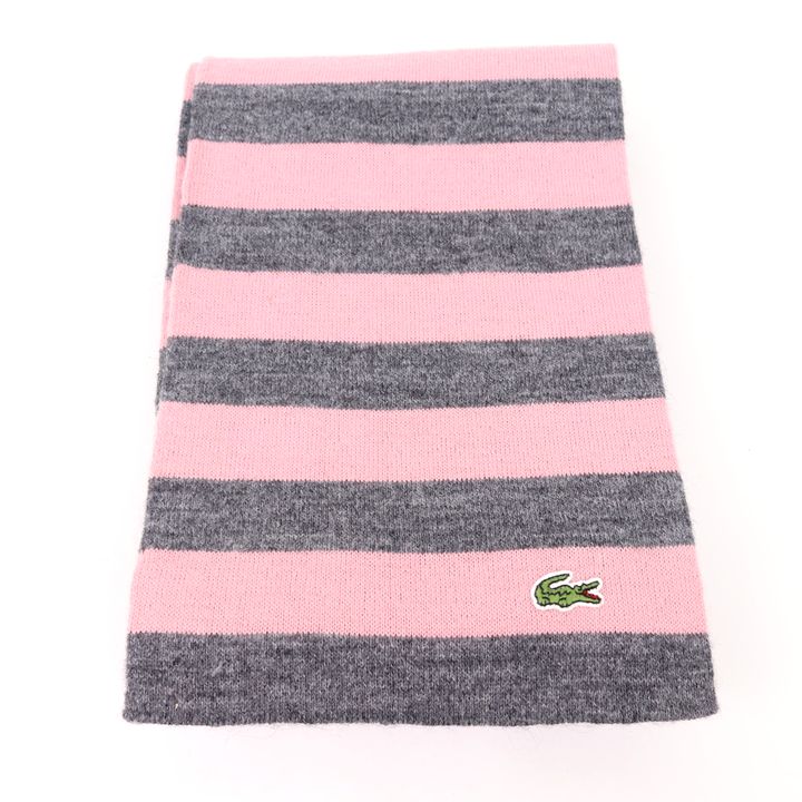 ラコステ マフラー ボーダー ロゴ アルパカ混 ブランド 小物 レディース ピンク LACOSTE 【中古】