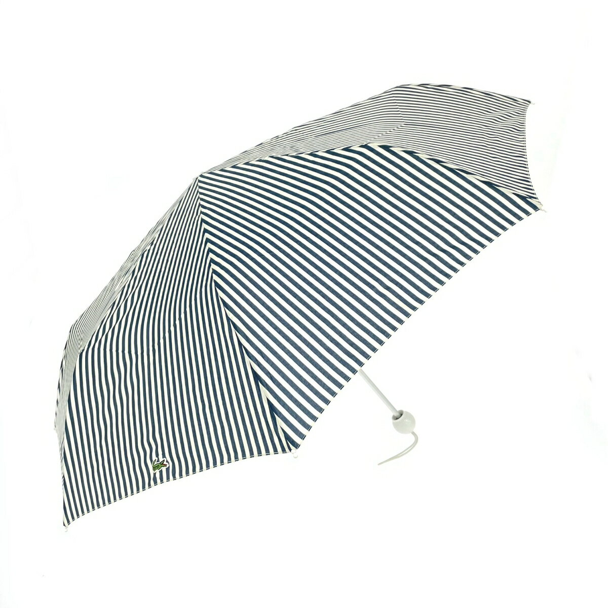 LACOSTE ラコステ 折り畳み傘 良好 ネイビー×アイボリー ストライプ ゴルフボール 日用品 【中古】