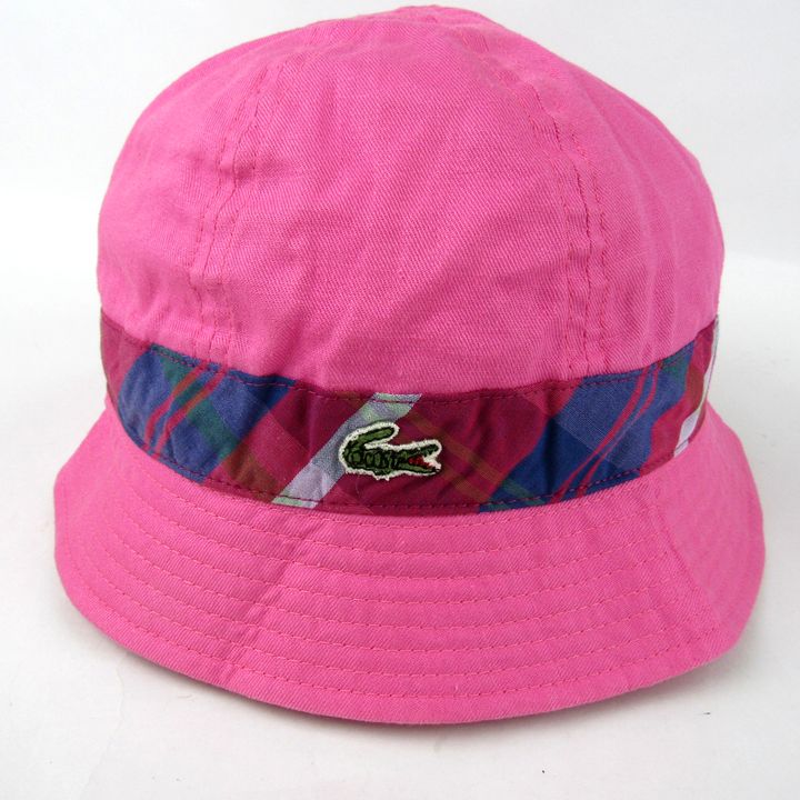 ラコステ ハット リネン混 チェック柄 ロゴ キャップ ブランド 帽子 レディース 57cmサイズ ピンク LACOSTE 【中古】