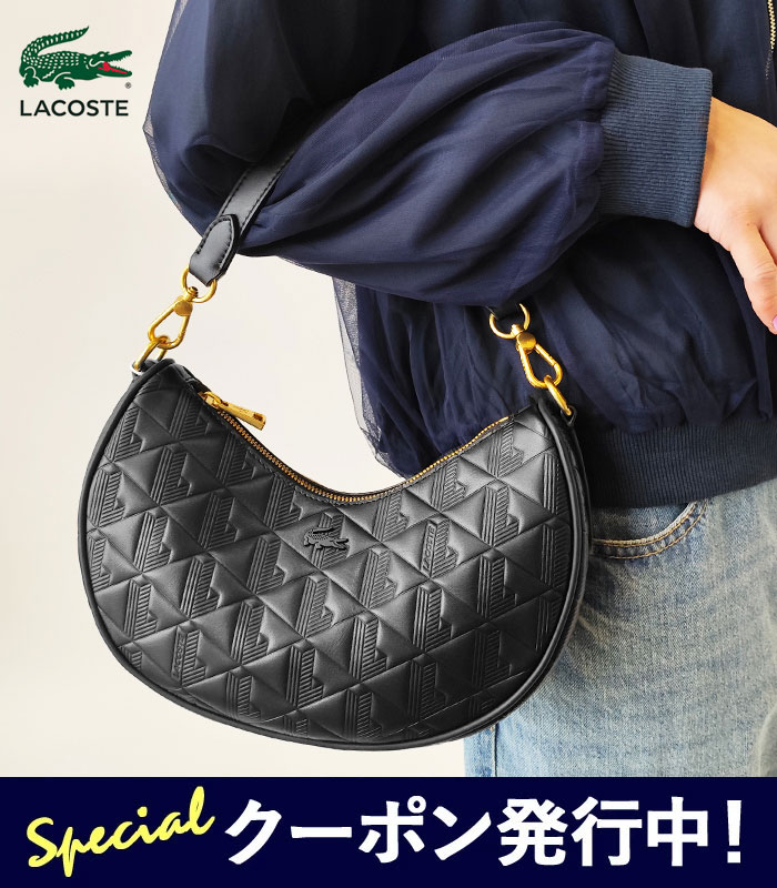 ★10%OFFクーポン発行中!ラコステ ショルダー バッグ レディース LACOSTE マヘキ レザー ショルダーバッグ NF4710MH 三日月型 ミニショルダー 2Way ハンドバッグ 本革 型押し モノグラム柄 ハーフムーン