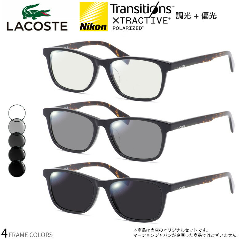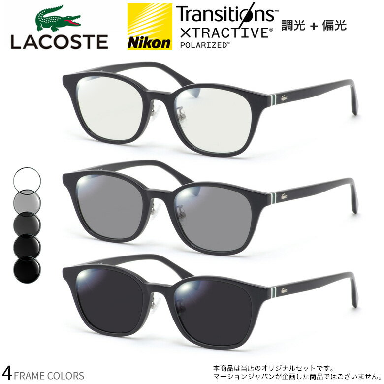 ラコステ L2943LB 49サイズ トランジションズ エクストラアクティブ ポラライズド 調光 偏光 サングラス 眼鏡 度付き 色が変わる 可視光調光 LACOSTE ダテメガネ 2WAY [OS]