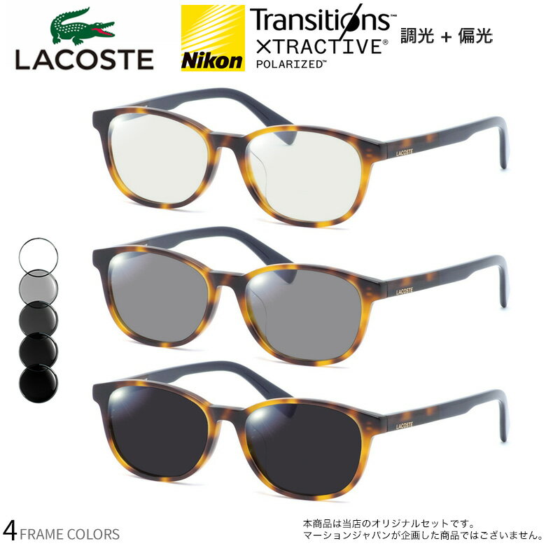 ラコステ L2516LB 48サイズ トランジションズ エクストラアクティブ ポラライズド 調光 偏光 サングラス 眼鏡 度付き 色が変わる 可視光調光 LACOSTE ダテメガネ 2WAY [OS]