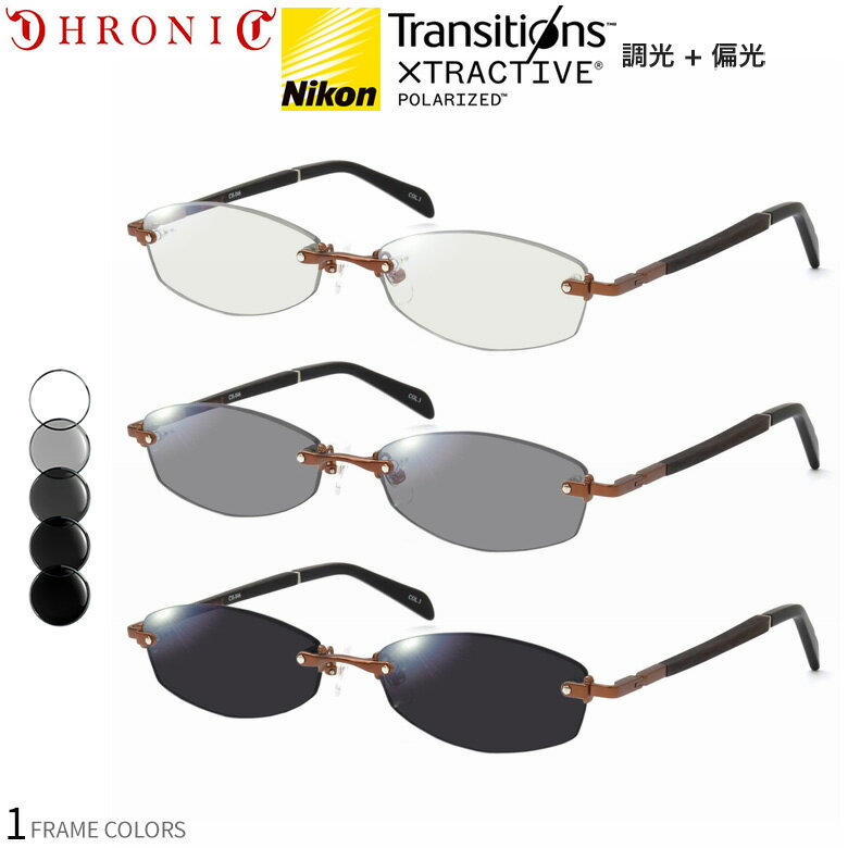 クロニック CH-046 3 55サイズ トランジションズ エクストラアクティブ ポラライズド 調光 偏光 サングラス 眼鏡 度付き 色が変わる 可視光調光 CHRONIC ダテメガネ 2WAY [OS]