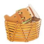 ラルフローレン RALPH LAUREN ベルト サッシュ 幅太 レザー 革 編み込み ウエストマーク ダブルピン バックルロゴ刻印 S 茶 ブラウン /CK20