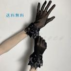 手首ラッフル レース手袋 透明 リボン 黒 レトロ 花柄 ロリータ ウエディング コスプレ コスチューム レースグローブ ショート丈 レディース 衣装 パーティー
