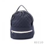 シャネル CHANEL マトラッセ バックパック リュックサック ナイロン レザー ネイビー ホワイト シルバー金具 レディース 中古