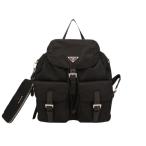 【10%OFF】 プラダ バックパック ナイロン サフィアーノ レザー ブラック 黒 三角ロゴ PRADA プラダ リュックサック レディース ショルダーバッグ デイパック トライアングルロゴ 通勤 通学 ビジネスバッグ バック BAG 中古