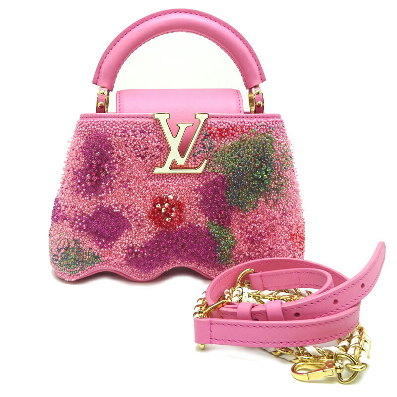 [銀座店]LOUIS VUITTON LV ルイ・ヴィトン カプシーヌ ミニ ハンドバッグ レザー/ビーズ ピンク レディース DH89495