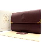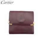 Cartier カルティエ 三つ折り財布 がま口 マストライン レザー ロゴ金具 レディース ボルドー