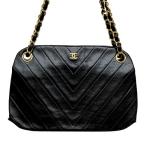 CHANEL シャネル チェーンショルダーバッグ がま口 Vステッチ ラム レザー ハンドバッグ ブラック レディース中古