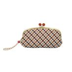 Atelier Kyoto Nishijin 西陣織シルク がま口長財布 京組紐ストラップ付 ギンガムチェック ブラウン | 長財布 レディース 日本製