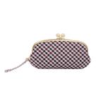 Atelier Kyoto Nishijin 西陣織シルク がま口長財布 京組紐ストラップ付 ギンガムチェック (Purple) | 長財布 レディース シルク