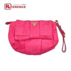 PRADA プラダ 1N1422 ロゴ リボン 小物 ストラップ付 マルチポーチ 収納ポーチ アクセサリーポーチ 化粧ポーチ ピンク レディース【中古】