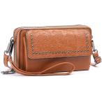 ショルダーバッグ 2WAY ポシェット エンボス 加工 レディース ウォレット 大容量 ポーチ PU レザー お財布 レトロ (ブラウン)