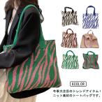 肩掛け レディース ニットトート エコバッグ ニットバッグ 大きめ ゼブラ柄 シマウマ柄 A4 ニットバッグ ジャガード 軽い 軽量 大容量 秋冬 バ
