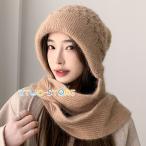 ニット帽 耳当て マフラー付き 帽子 襟巻き 一体型 秋冬 スヌード レディース 小顔効果 大判