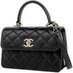 シャネル CHANEL トップハンドル ミニ フラップ ショルダーバッグ 2WAY ハンドバッグ ココマーク ロゴ マトラッセ レザー ブラック AS4654 レディース 中古