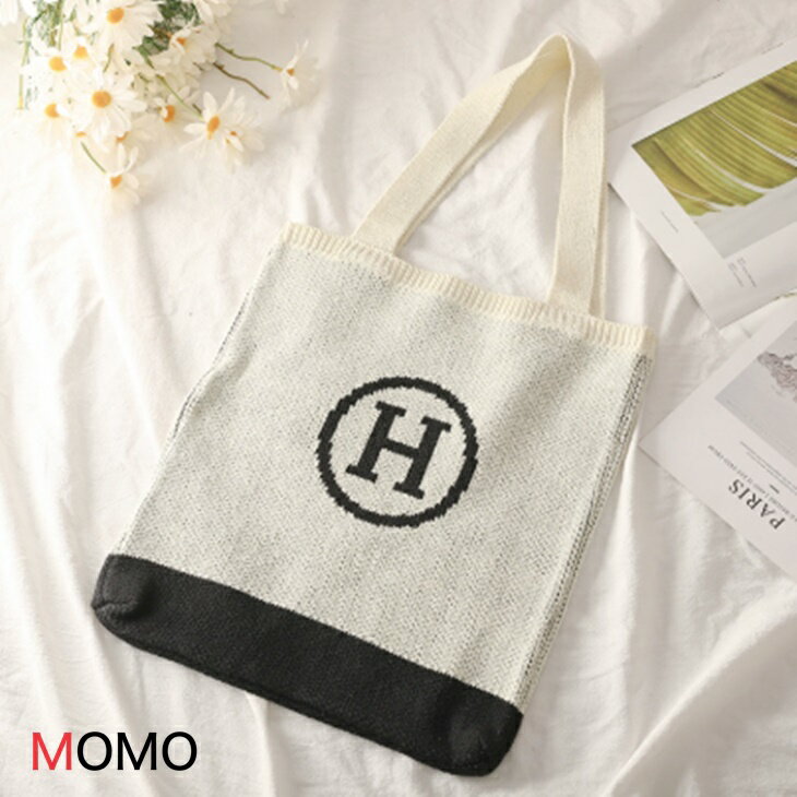 バッグ レディース Hロゴニット トートバッグ キャンバスバッグ 布バッグキャンバス ワンハンドル コットンバッグ 丈夫 大容量 かわいい ショルダーバック 肩掛け 軽い 手提げ カジュアル セカンドバッグ 韓国