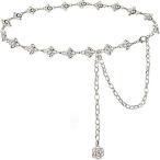 TOPACC メタルチェーンベルト レディース ウエストチェーン ドレス ジーンズ ウェスタン カウガール, シルバー - 32, Length 49