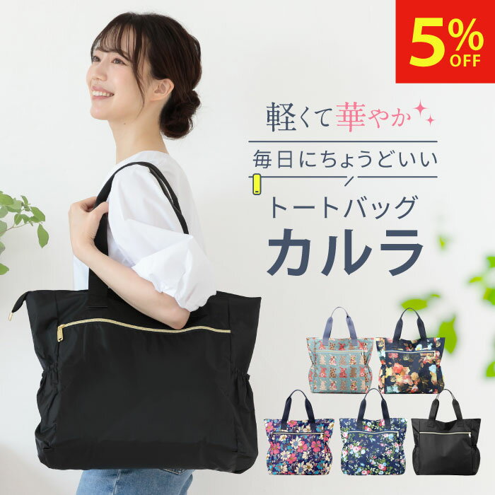 【アフターセールクーポンで5%OFF】 トートバッグ レディース 大容量 軽量 ナイロン ファスナー付き サブバッグ 花柄 通勤 通学 旅行 1泊2日 かわいい おしゃれ デイサービス バッグ