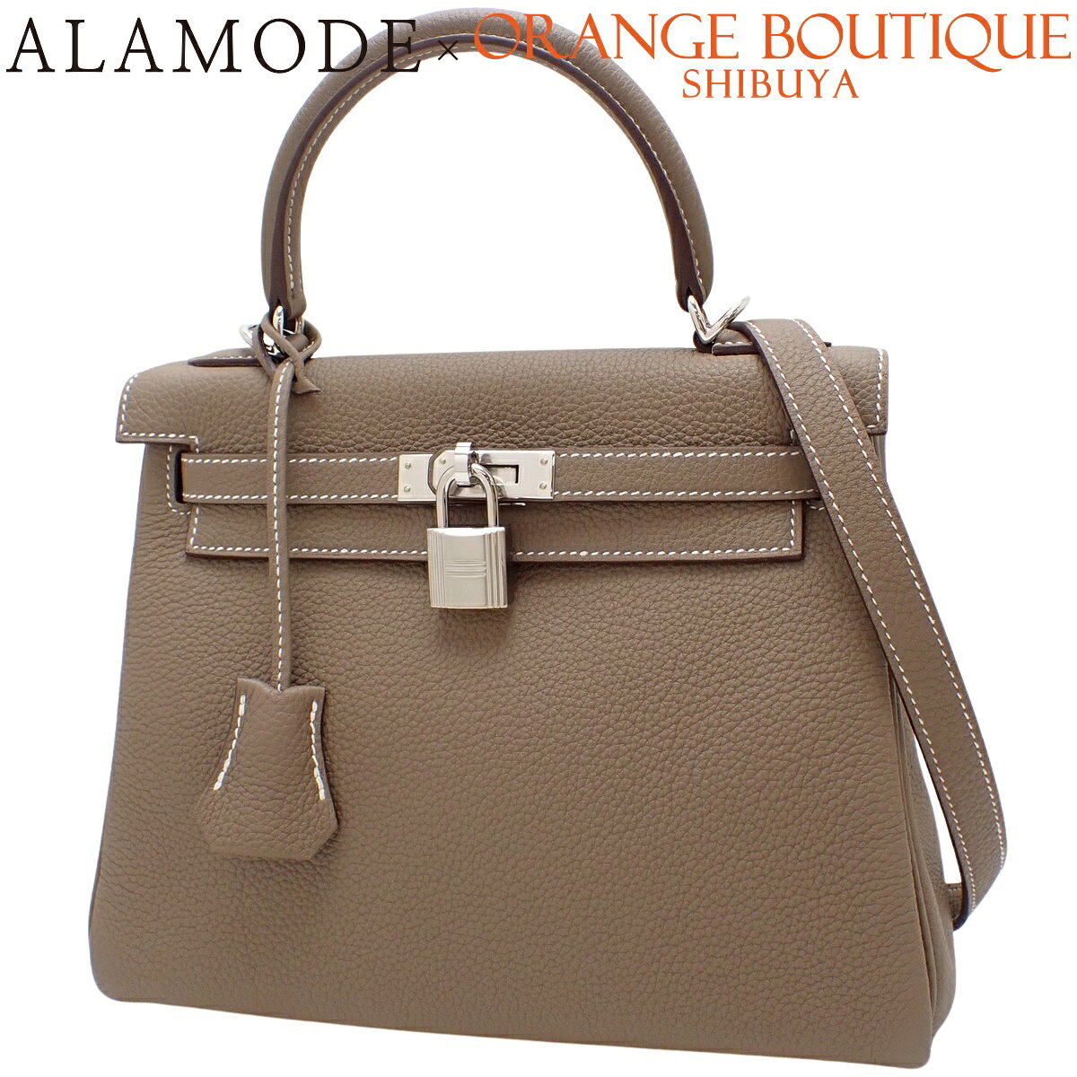 HERMES(エルメス) ケリー25 (内縫い) エトゥープ/エトープ グレージュ トリヨンクレマンス パラジウム金具 シルバー金具 B刻印 ハンドバッグ トートバッグ ショルダー 肩掛け 2WAY レディース 40802156331【中古】【アラモード】
