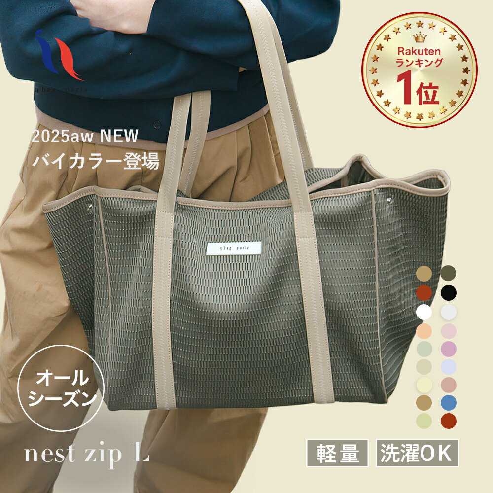 ≪楽天1位★SNSでも話題≫トートバッグ レディース バッグ 秋冬 オールシーズン 軽量 通勤 a4 PC 大きめ 大容量 ファスナー ブランド おしゃれ 大きい 軽い 旅行 秋バッグ クリスマス プレゼント 誕生日 キューバッグ │ qbag paris ネスト Lサイズ ジップ付き nest L zip
