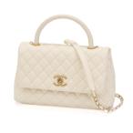 【美品】シャネル トップハンドル マトラッセ チェーンショルダー レディースバッグ ハンドバッグ A92991 キャビアスキン ゴールド金具 ホワイト 6153139j