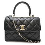 シャネル トレンディCC スモールトップハンドル フラップ バッグ A92236 ラムスキン レディース ハンドバッグ ホワイト