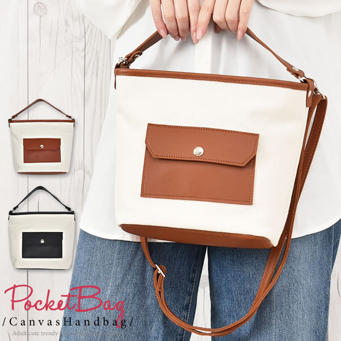 \500円クーポン有/ ハンドバッグ レディース 【宅配便配送】 バッグ 2way ポケット キャンバス カバン 鞄 bag ショルダーバッグ 斜めがけ マチあり カジュアル かわいい おしゃれ シンプル 大人 ( ポケット付きキャンバスハンドバッグ )