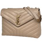 サンローラン SAINT LAURENT ルル ミディアム YSL ショルダーバッグ レザー ベージュ 574946 レディース 中古