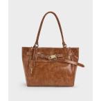 トートバッグ ターンロックダブルベルトレザーバッグ レディース