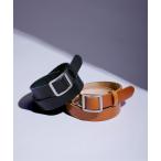 ベルト 「牛革」シンプルスクエアバックル細めベルト レディース