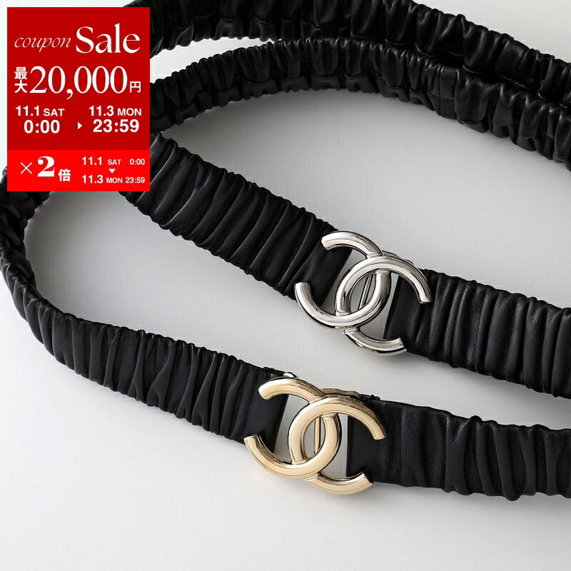 【11/1~11/3限定・最大2万円OFFクーポン配布中】CHANEL シャネル ベルト AAB080 B20596 レディース メタル ココマーク CCマーク ロゴ レザー ゴムベルト ギャザー カラー2色
