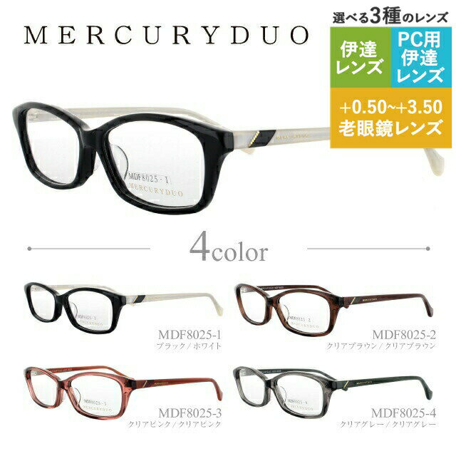 【SALE 10%OFF】マーキュリーデュオ メガネフレーム スクエア型 おしゃれ老眼鏡 PC眼鏡 スマホめがね 伊達メガネ リーディンググラス 眼精疲労 MERCURYDUO 伊達 眼鏡 MDF8025 全4カラー レディース ファッションメガネ プレゼント