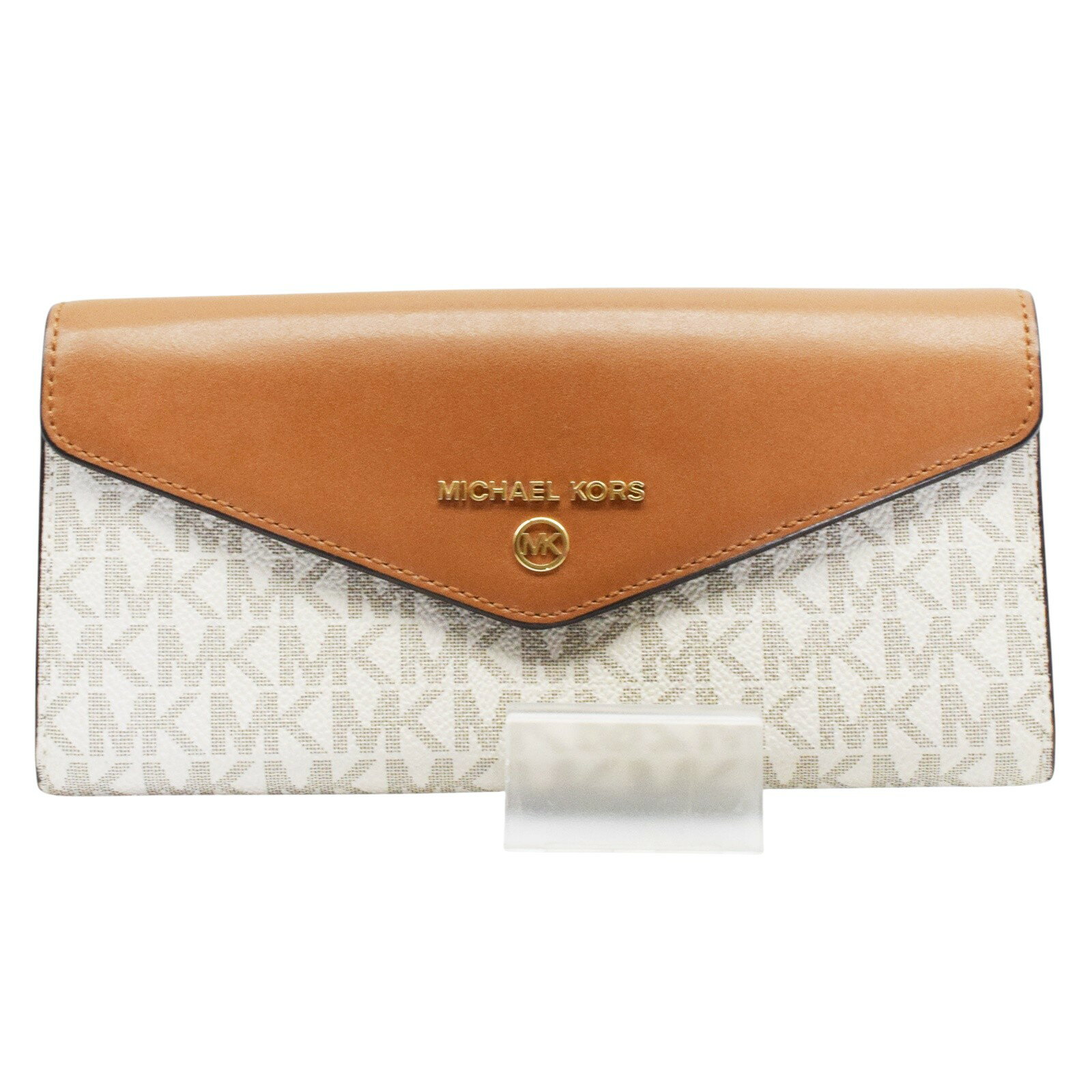 【中古】【MICHAEL KORS】マイケルコース 二つ折り 長財布 ブラウン ホワイト レザー ボタンホック開閉 MKロゴ レディース USED-A【リサイクルマート+質秩父店】r261-1200294905800178