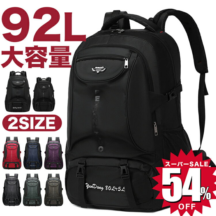 \スーパーSALE限定54%OFF!爆安/【防災・避難★災害用】リュック 92L 大容量 撥水 メンズ バックパック PC ビジネス リュックサック 軽量 旅行 通勤 通学 レディース 男女兼用 マザーズバッグ キャンプ 防災 アウトドア 旅行バッグ 人気 大人 おすすめ 多機能 登山リュック