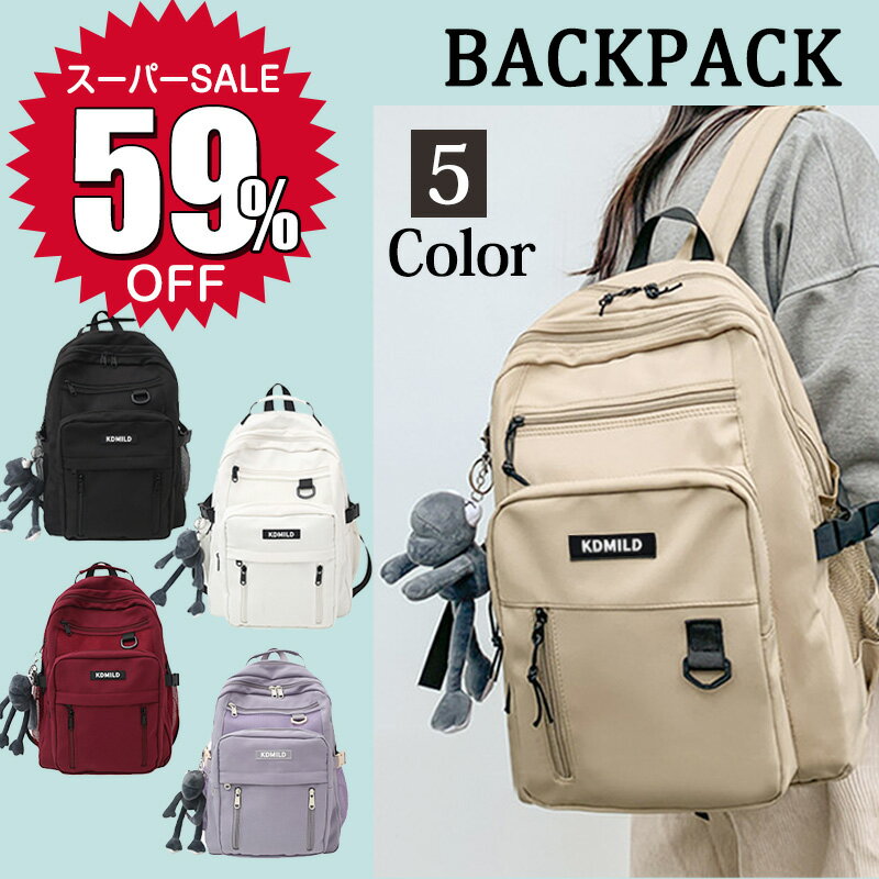 \スーパーSALE限定59%OFF!爆安/送料無料 リュック レディースリュックサック 通学 通勤 男女兼用 メンズ 大容量 軽量 バックパック 防水 林間学校 韓国 可愛い a4 撥水 シンプル 高校生 中学 ナイロン サイドポケット 収納 多機能 新学期 人気 おしゃれ おすすめ