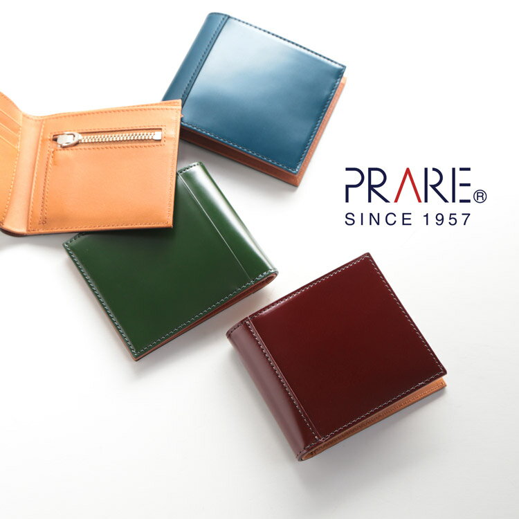 【5%OFFクーポン】二つ折り財布 レディース コードバン 本革 日本製 薄型 財布 ファスナーポケット 付き PRAIRIE ブランド 【名入れ 可能】ブランド 馬革 普段使い 折り財布 レディース財布 ギフト プレゼント 4FA (09000232r)
