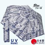ふるさと納税 田原本町 レディース 晴雨兼用傘 ミニ傘 591503 綿 ローンプリント タウン柄 日本製 ブルー系